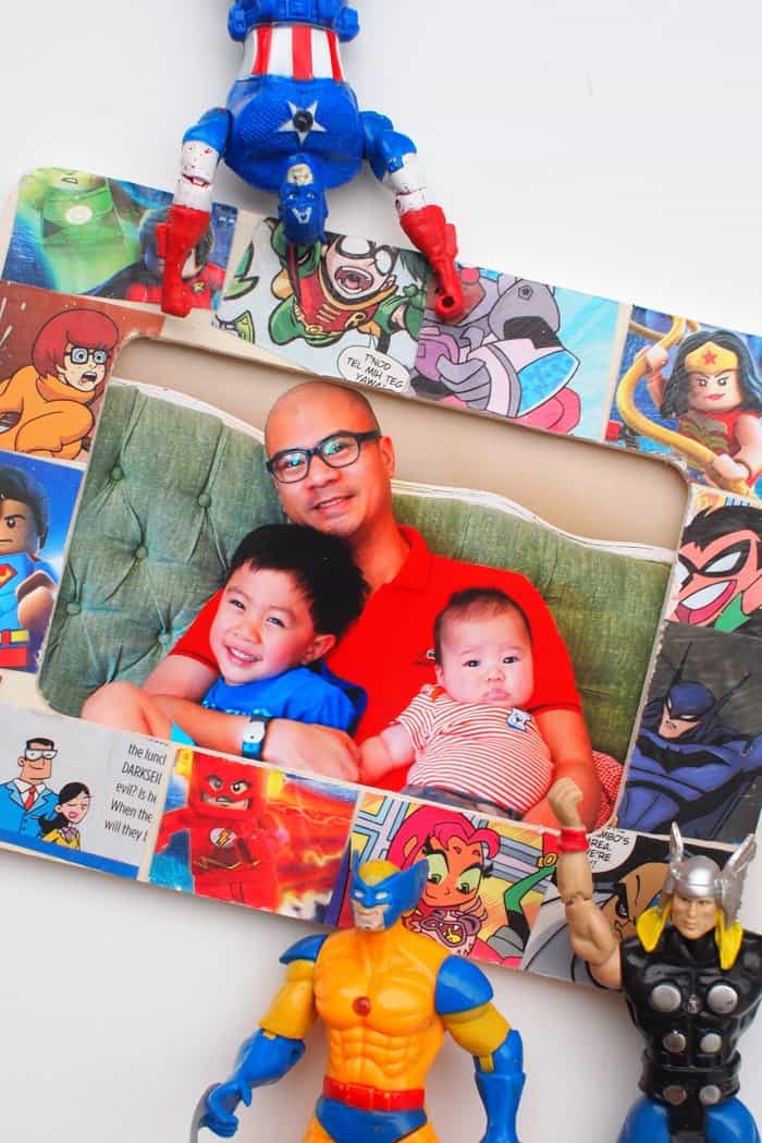 You’re going to use Mod Podge and squares from your favorite comic books for this DIY photo frame! If the idea of cutting up comic books doesn’t work for you, use color copies (preferably laserjet) for the task.